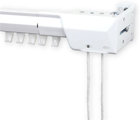 Heavy Duty Traverse Curtain Rod Set - One Way Draw, Cord Draw - White Metal Pinch Pleat Track For Drapery & Window Treatments