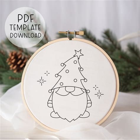 Gnome Embroidery Art: Christmas Tree Decor Pattern, Idea Gift (PDF Template)