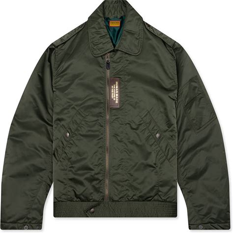 Human Made Flight Jacket Olive Drab Nylon Shell With Polyester Lining Zipper Closure And Screen-Printed Graphics