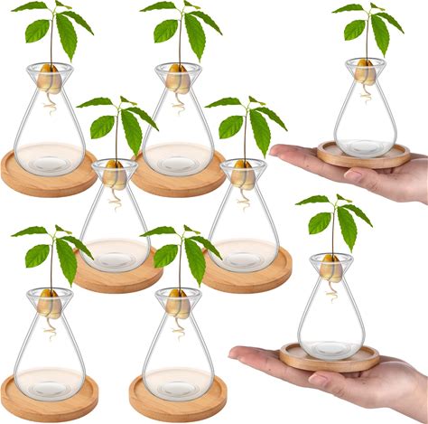 Haiabei 6Pcs Small Avocado Seed Starter Vase With Bamboo Base Avocado Tree Growing Vase Kit Avocado Seed Sprout Starter Vase Planter Pot Easy Seed
