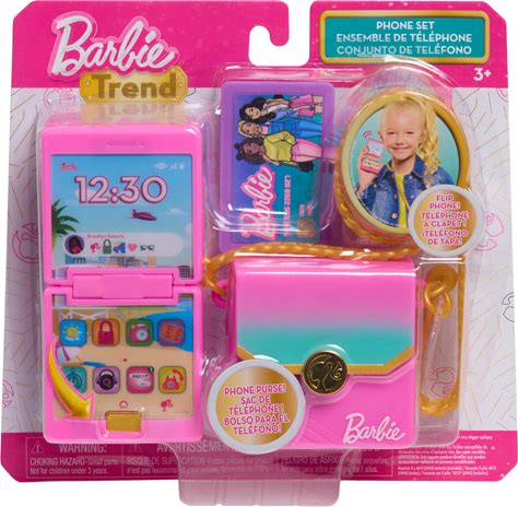 Barbie Trend Lights And Sounds Phone Set, 4-Pieces, Interactive Toy Phone, Toy Purse, Dress Up And Pretend Play, Easter Basket Fillers, Presents,
