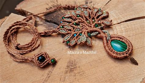 Macramé Tree Of Life, Necklace, Macrame, Malachite, Gemstones, Tree Of Life, Tree Of Life, Macrame Necklaces, Macrame Necklace,Necklaces