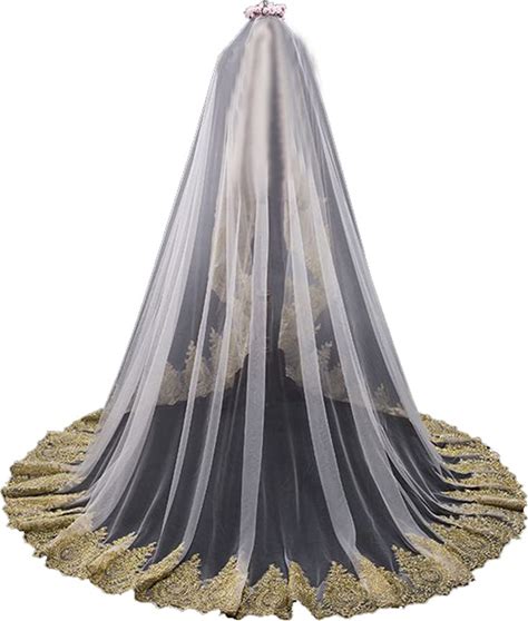 EASEDAILY Lace Wedding Veil Long Cathedral 1 Tier Bridal Tulle Veils With Comb For Women