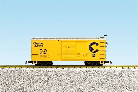 USA Trains G Scale R19155A Chessie C&O 23285 Boxcar - Yellow/Blue Ends/Sil Roof