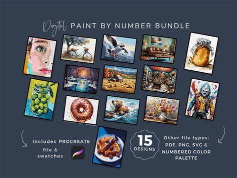 Color-By-Number Bundle, Procreate Paint By Numbers With Swatches, Adult Coloring Pages, 15 Unique Designs, Instant Download, WP452
