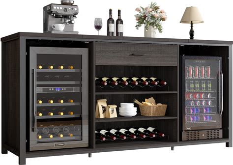 LVB Large Bar Cabinet With Fridge Space, Rustic Long Liquor Cabinet With Drawer Storage, Farmhouse Wood Metal Wine Cabinet With Rack, Sideboard Buffet