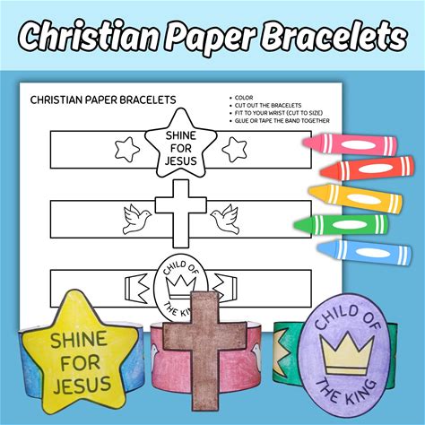 Christian Printable Paper Bracelets Craft For Kids Sunday School Bible Lesson Activity Jesus Faith-Based Wristband Coloring Craft For Church