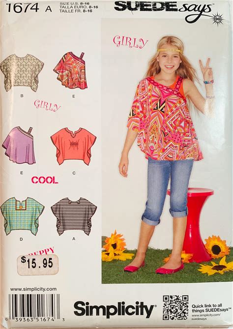 Girls Tops Pattern 5 Styles Sizes 8 10 12 14 16 Suede Says Simplicity 1674 UNCUT