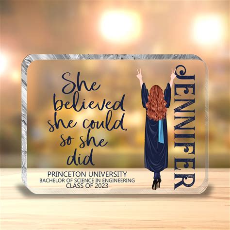 Personalized "She Believed She Could" Graduation Acrylic Plaque - Inspirational Custom Decor For Graduates