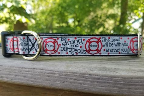 Firefighter Maltese Cross "The Lord Will Be With You Wherever You Go... Be Strong And Courageous... Duty Honor" 1" Handmade Dog Collar