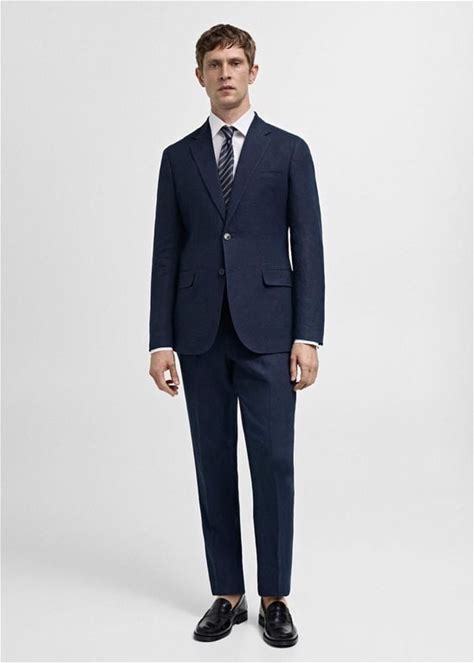 Mango Men's 100% Linen Slim-Fit Suit Jacket Dark - Blue - Casual Jackets