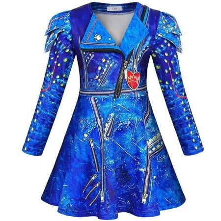 Jurebecia Descendants Evie Princess Costume For Girls Cosplay Clothes Zipper Jacket Long Sleeve Dress Fancy Halloween Birthday Party Outfits 120 cm 5-