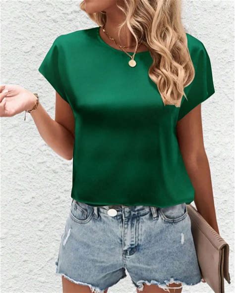 Women's Elegant Satin Top Satin Shirt Summer Tops Solid Color Plain Vintage Stylish Classic Short Sleeve Crew Neck Regular Tops Daily Holiday Going Ou