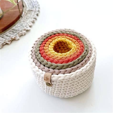 Crochet Nesting Bowls Pattern / Tutorial: Set Of 7 Colorful Nested Crochet Basket Pattern - Instant Download