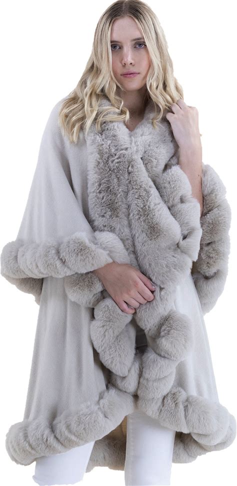 Beige Faux Fur Trim Cape: Elegant Beige Winter Wrap
