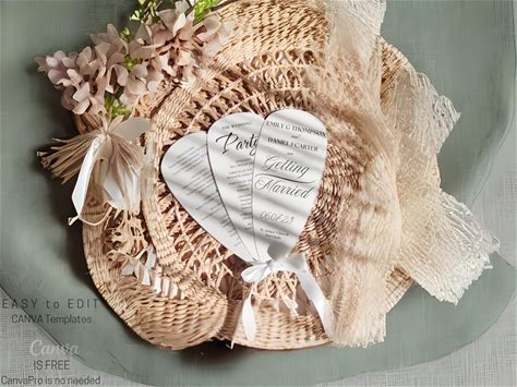 Wedding Fan Petal Program Template, DIY Hand Fans Canva,