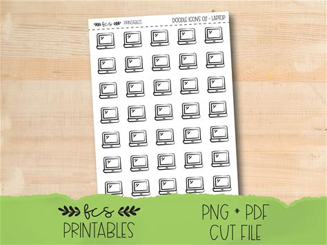 Printable LAPTOP Doodle Icon Stickers In Four Colorways