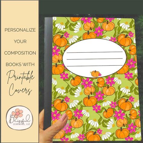 Floral Pumpkin Composition Notebook Cover: Printable Sticker (PNG Download 7.25X10 Inch)
