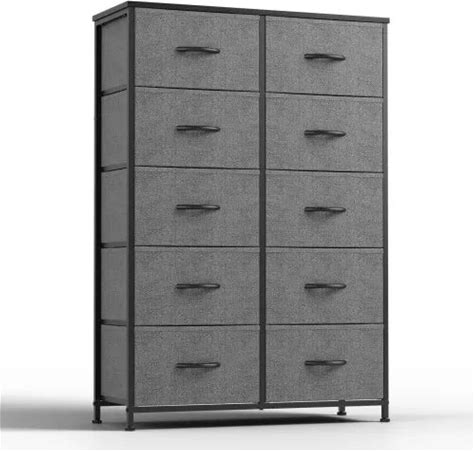 Tall 10-Drawer Fabric Dresser Bedroom Storage Tower, Grey