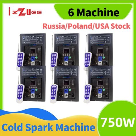 6PCS 750W Control Cold Spark Machine White Black Stage Fountain Sparkler Machine With Flightcase For