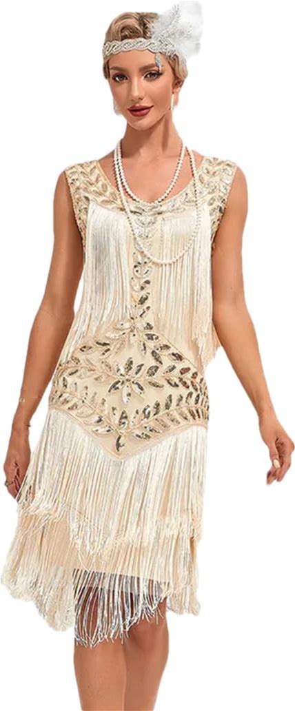 MTITE Great Gatsby Dresses 1920S For Women, Vintage Long Fringe Dress Roaring 20S Sequins Beaded Dress With Accessories Set