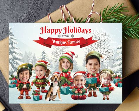 Funny Photo Christmas Greeting Card, Elves Family Or Company Holiday Card With Faces, Elf Family Christmas Card, Elf Team Card, Digital File