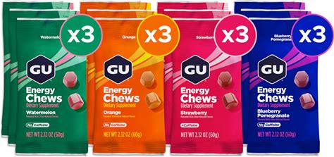 GU Energy Chews, Variety Pack Energy Gummies With Electrolytes, Dairy-Free, On-The-Go Energy For Any Workout, 12 Bags (24 Servings Total)