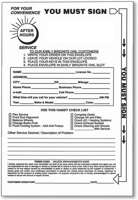 100 Night Drop Key Envelopes - Auto Repair Shops And Mechanics Gummed