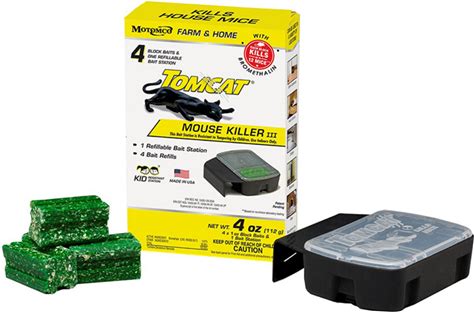 Tomcat Mouse Killer III Refillable Bait Station With 4 X 1 Oz. Refills | Kid Resistant, Bromethalin