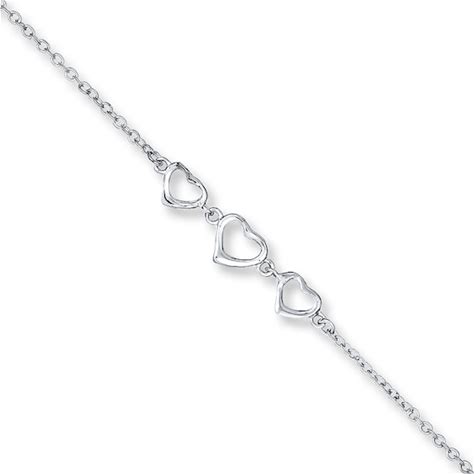Kay Heart Link Anklet Sterling Silver 10"-11"
