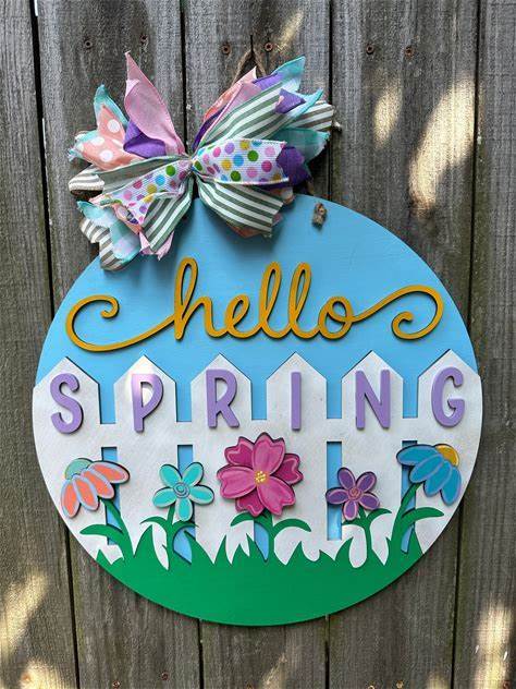 Hello Spring Door Hanger: 18" Welcome Spring Sign