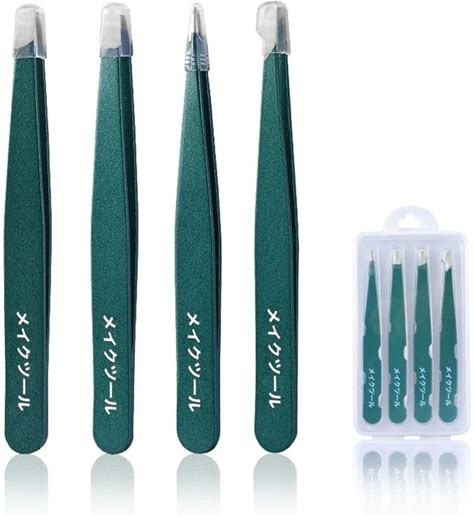 4-Piece Stainless Steel Tweezer Set Unisex Professional Precision For Facial Hair Eyebrows Ingrown