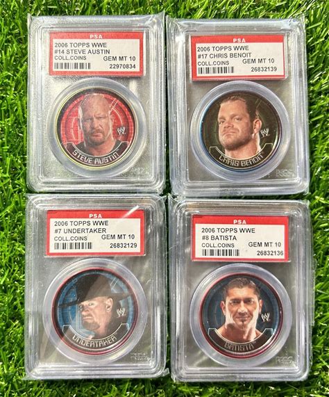 Lot Of 4: Undertaker Benoit Batista Austin 2006 Topps WWE Collector Coins PSA 10
