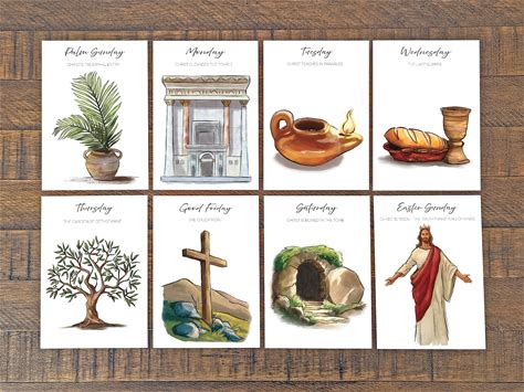 Holy Week Countdown, Holy Week Study Cards, Holy Week Advent, Easter Advent, Easter Bible Study Guide Devotional, Printable Holy Week Cards