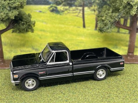 1967-1972 Chevy C10 Pickup Long Bed Black 1/64 Diorama Model