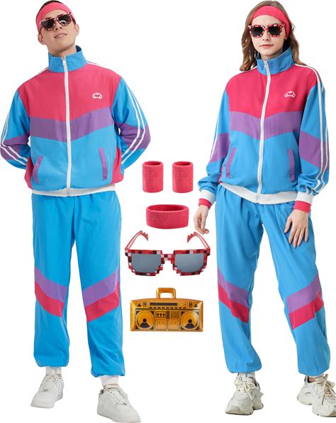 80S Outfit For Men Women 80S Costume Tracksuit Mens 90S Disco Themed Outfit Hip Hop Set Windbreaker Cosplay Outfits