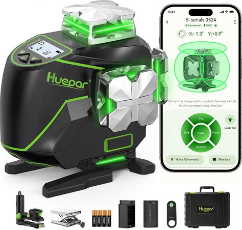 Huepar 12V 4X360 Laser Level Self Leveling With Bluetooth And Remote Control, 4D Green Cross Line Laser, 16 Lines Lazer Leveler Tool For Construction,