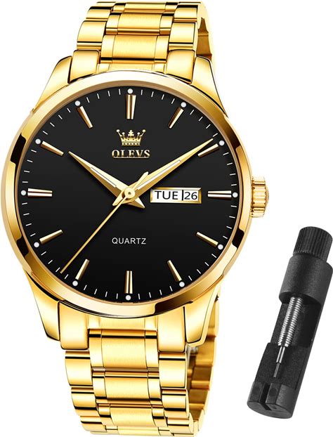 OLEVS Mens Gold Watches Waterproof Stainless Steel Lightweight Watch With Date Classic Luxury Dress Watch For Men Gold White Blue Green Dial