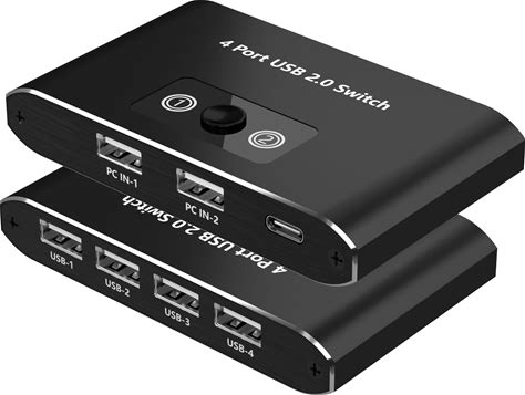 USB 2.0 Switch, 2 Computers Sharing 4 Devices, USB 2.0 Switcher For Mouse, Keyboard, Printer, Scanner, Flash Drive, Compatible With Windows, Mac,