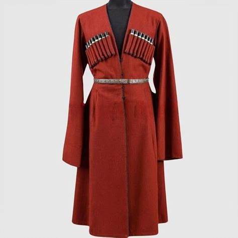 Men's Red Traditional Georgian Cossack Costume Georgian Clothing Wool Coat