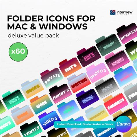 60 Folder Icons Deluxe Pack For Mac & Windows Desktops - Instant Digital Download | Canva Template | Self Editable | PC Customization