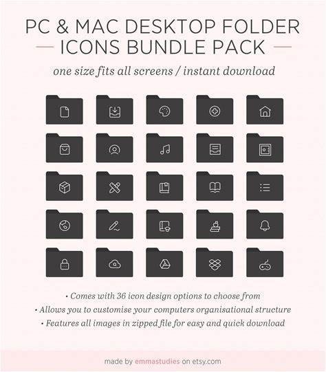 Desktop Folder Icons | Customisable Icons Black Pack | Windows And Mac OS Systems | Instant Download | Laptop, Desktop, PC, Mac Organiser