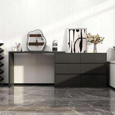 Makeup Desk Rotating Dresser And Desk 6 Drawer Dresser Vanity Makeup - Black