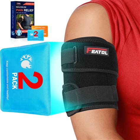 FEATOL Bicep Tendonitis Brace With 2 Gel Ice Packs, Upper Arm Brace Tricep Compression Sleeve Support Hot & Cold Therapy For Men And Women, Pain
