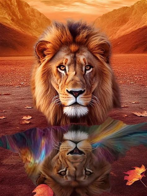 Pavemlo 5D Diamond Art Kits For Adults Reflecting Lion Head, Full Drill Diamond Art Animals Pictures Paint With Diamonds, DIY Cross Stitch Jewel Art