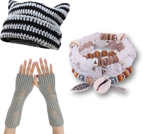 CORIRESHA Cute Cat Ear Beanie Fingerless Gloves Stackable Bracelets Emo Stuff Fairycore Grunge Y2k Accessories