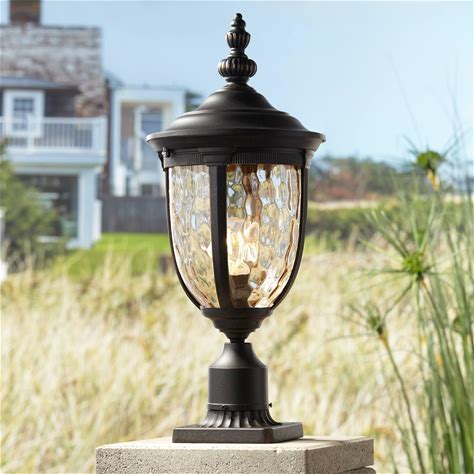 John Timberland Bellagio European Outdoor Post Light Fixture With Pier Mount Bronze 25 Inch Tall Glass For Exterior House Porch Patio Outside Deck