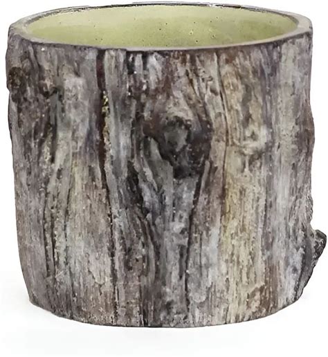 Slickblue Tree Trunk Planter, Cement Faux Bois Round Concrete Pot, Bark Detailing, Indoor Use, 6.75" Dia