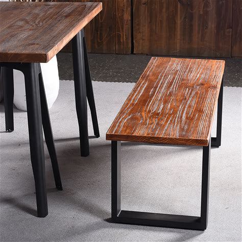 Wooden Bench With Matte Black Metal Frame Seating - Blackframe-Naturalbench