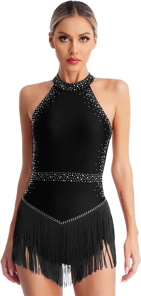 YILINFEIER Latin Dance Dress For Women, Backless Velvet Salsa Dress Tango Flamenco Jazz Dance Costumes